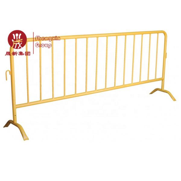 Roadway Safety Barricade with flat-style feet, is the ideal choice at special events or venues that require funneling crowds or traffic in parallel lines. The flat-foot design minimizes the tripping hazard and vehicle tires roll easily over the foot without damage to the barricade. The flat foot distributes weight evenly and rubber grommets provide added protection for sensitive floors. Two holes in each foot allows it to be anchored to the ground.
